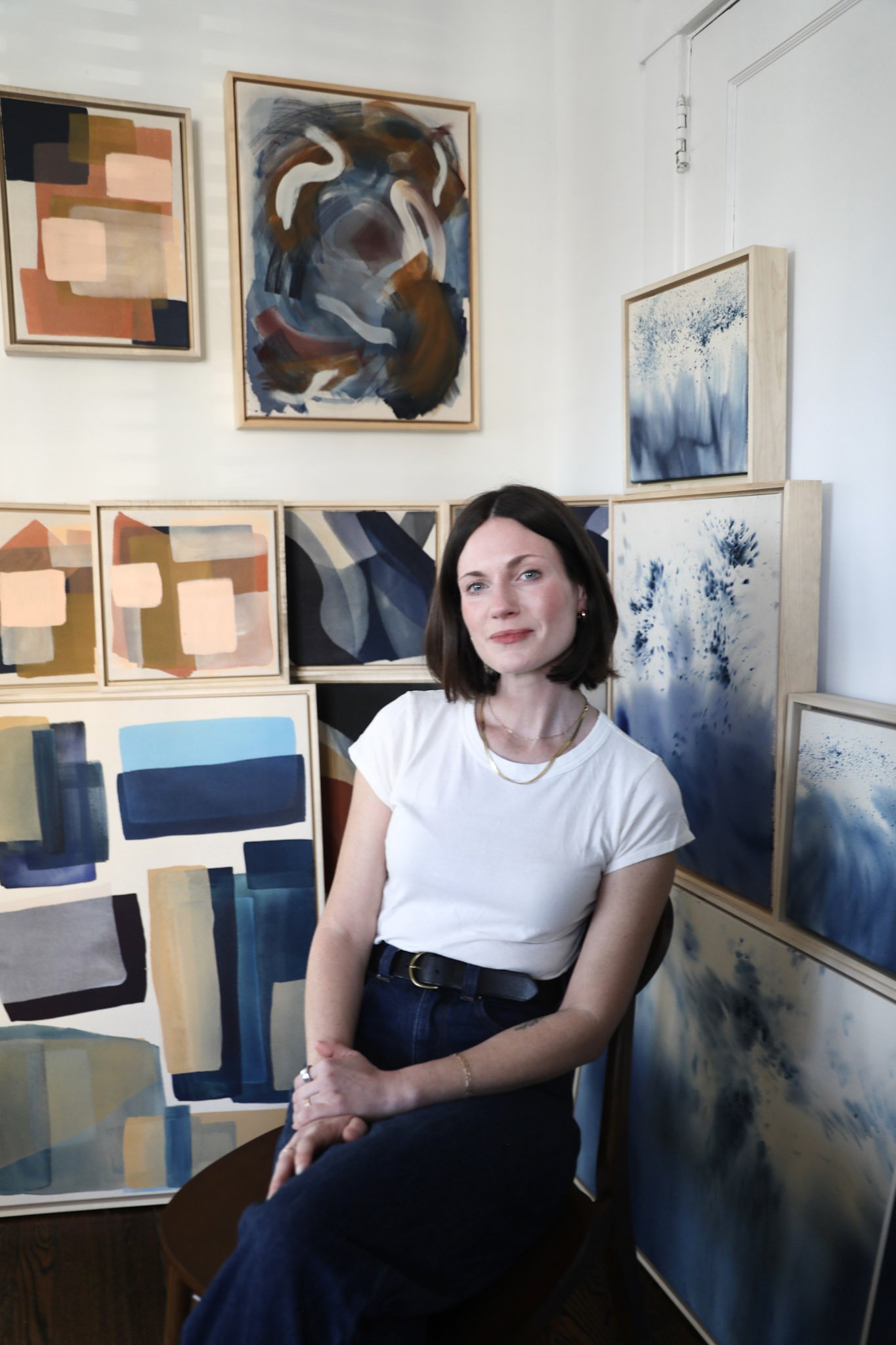 Through the use of color, shapes, and movement she creates balance and quiet enthusiasm in her work. A vibrant minimalist or subtle maximalist at heart, her pieces embody a playful refinement. Her work oscillates between geometric compositions and more fluid, abstract expressionist pieces, exploring the balance between structure and movement. Alicia’s paintings are created to engage the viewer, inviting quiet reflection while adding subtle vitality to any space.